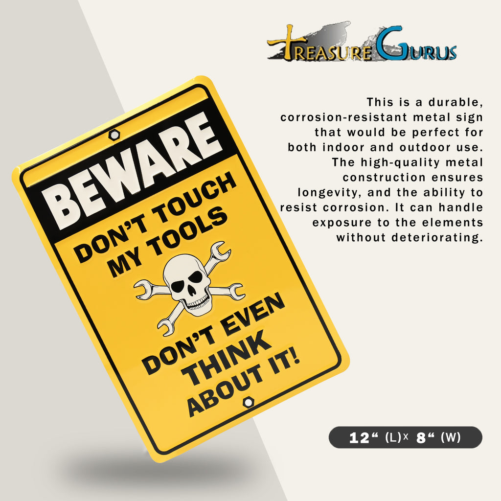 Metal Don't Touch Tools Funny Sign for Man Cave, Shop, Garage Tin Wall Art Decor