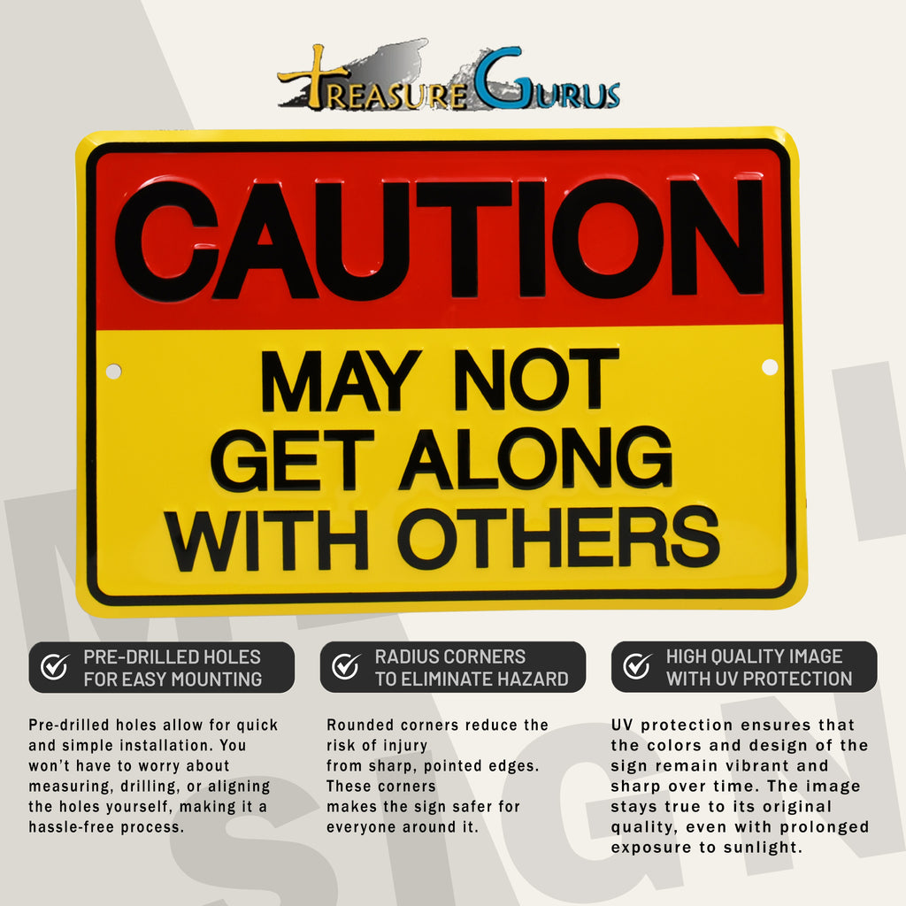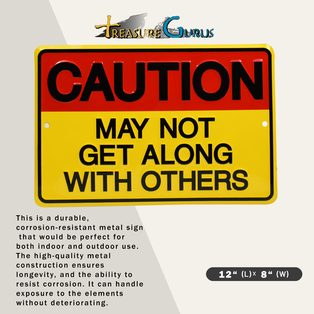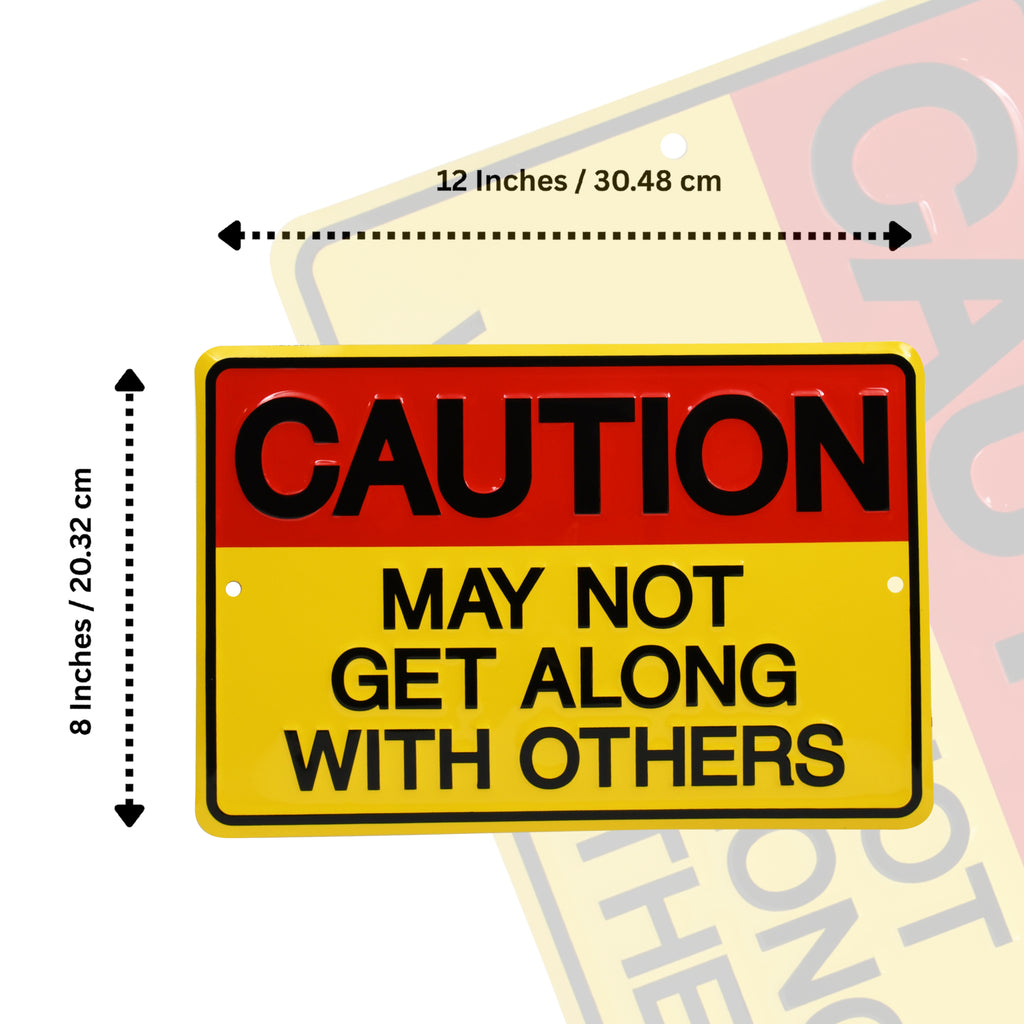 - HILARIOUS OFFICE OR DORM SIGN – “Caution May Not Get Along With Others” tin sign fits office desk accessories, dorm room decor, or man cave setups perfectly