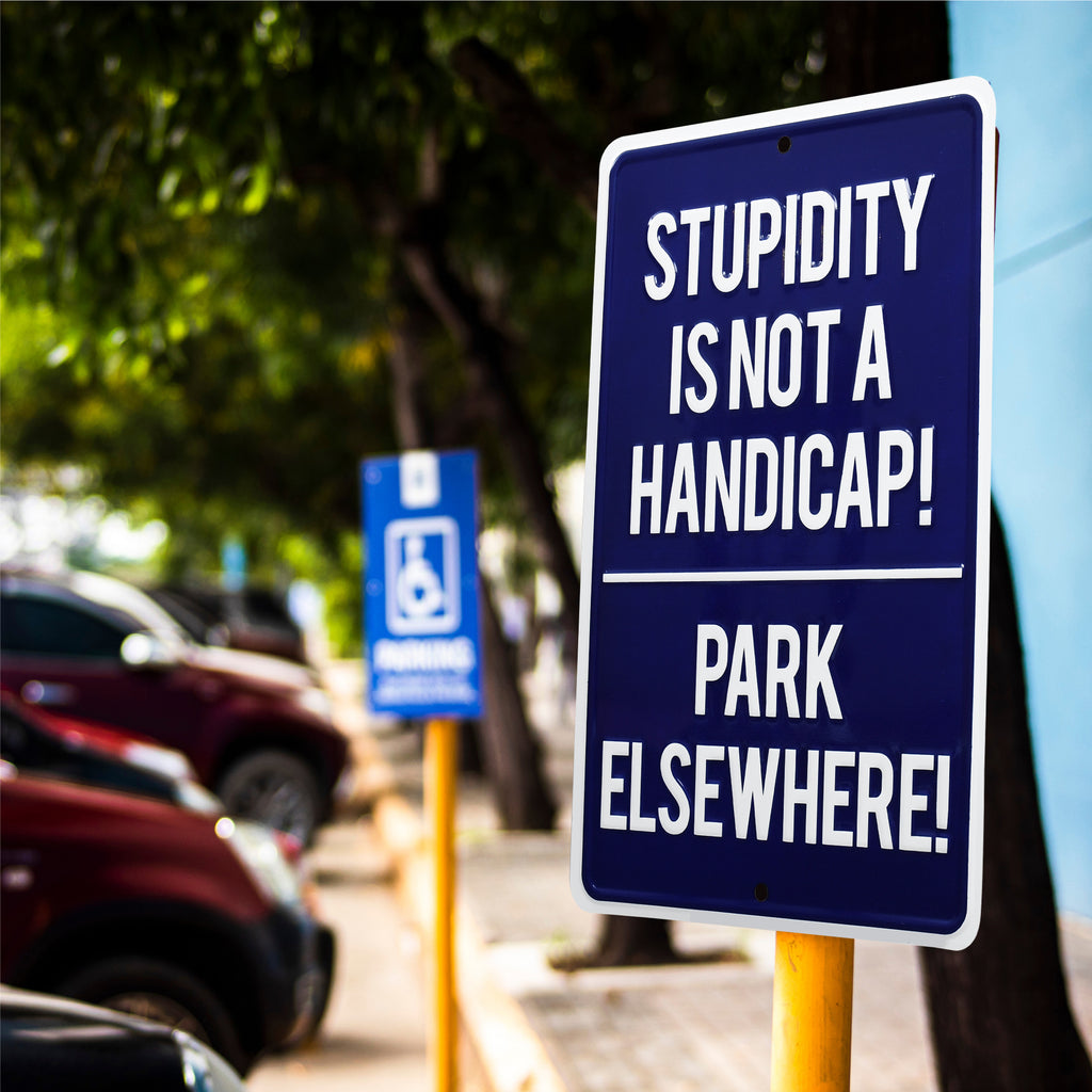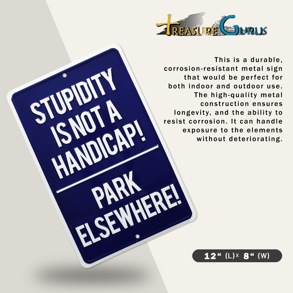 Metal Stupidity Is Not A Handicap Park Elsewhere Sign for Garage, Man Cave Decor
