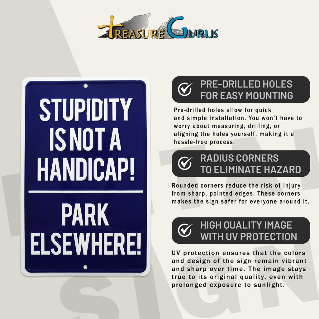 Metal Stupidity Is Not An Handicap Park Elsewhere Garage Sign Features: