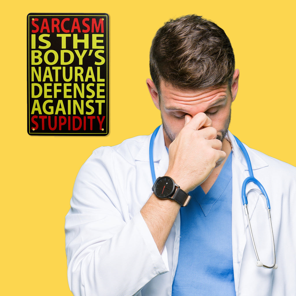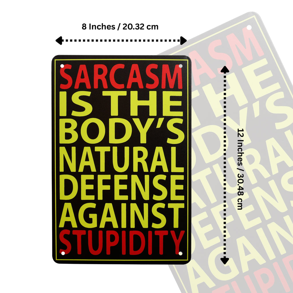 Metal Wall Sign Sarcasm Bodys Natural Defense Against Stupidity Man Cave Decor