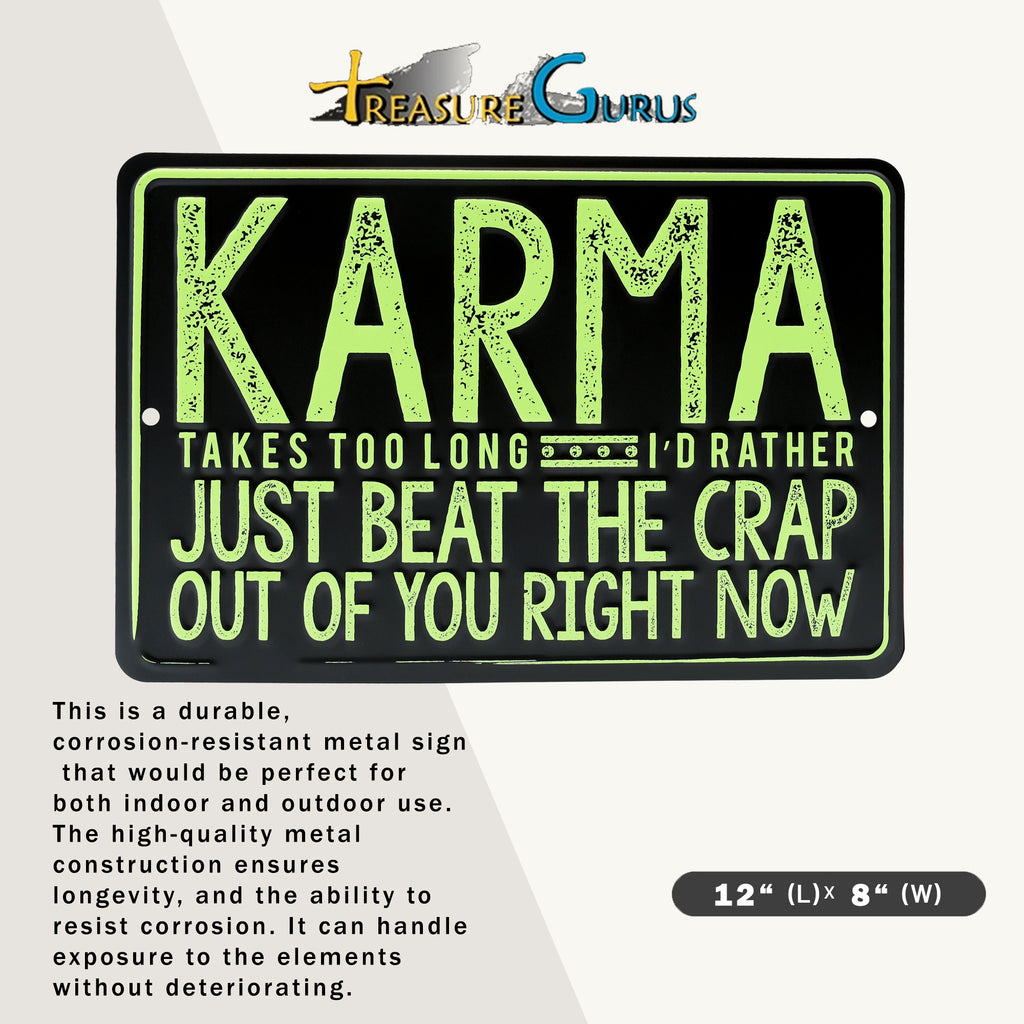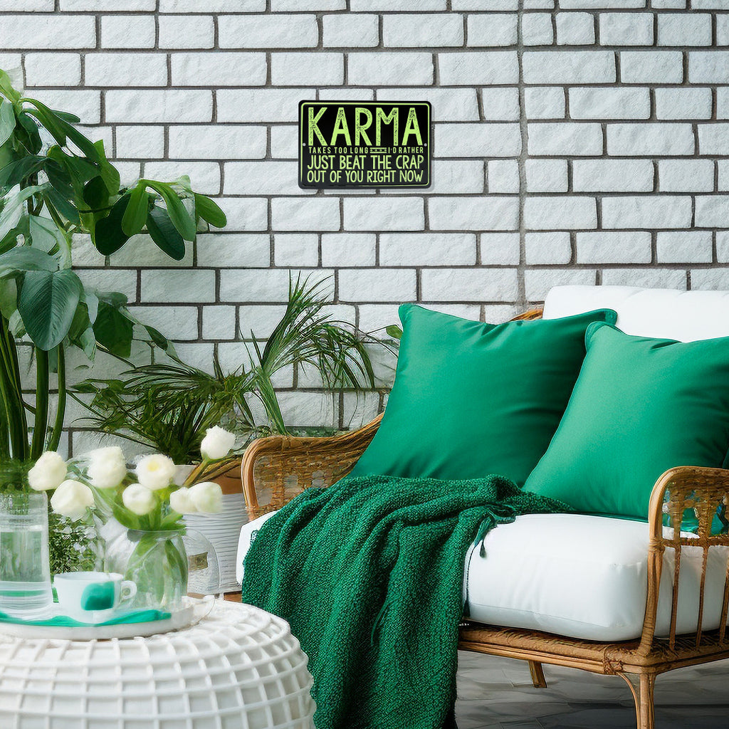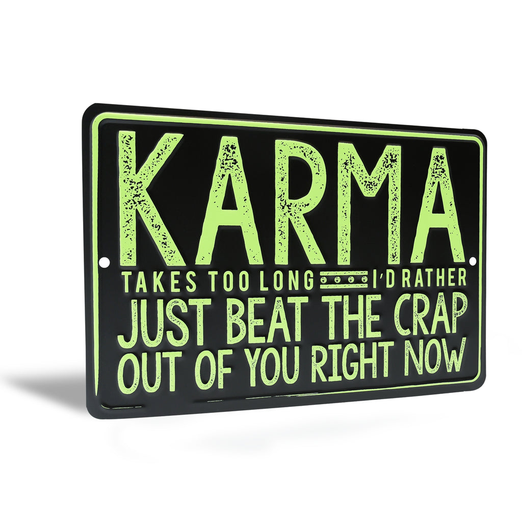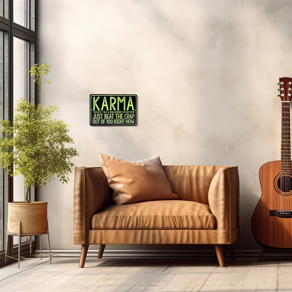 Metal KARMA Beat The Crap Wall Art Sign Man Cave Bar Apartment Home Room Decor