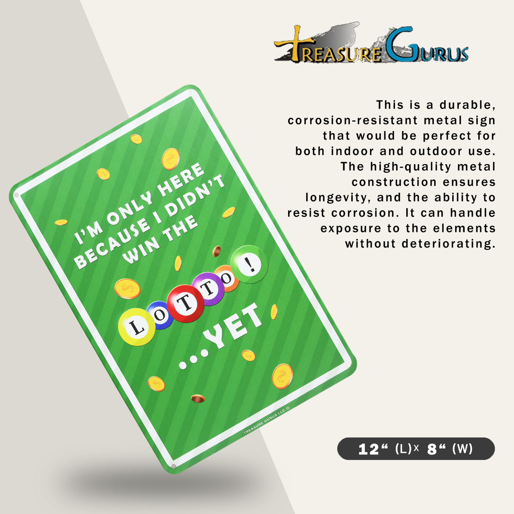 Add some lotto-themed humor to your daily grind with our “ I’m Only Here Because I Didn’t Win the Lotto Yet ” sign. Perfect for anyone still showing up to work while daydreaming about hitting it big, this sign brings a funny, relatable vibe to any workspace. Its bold lettering and vintage-inspired style make it a standout piece among cubicle accessories, office decor posters, or even home office setups. Ideal for fans of the lottery or anyone who jokes about leaving their job once they’ve scored the winning ticket, it’s a great way to express your sense of humor without saying a word. Made of durable metal, this funny desk sign measures 12" long by 8" wide, making it the perfect size for hanging on cubicle walls or propping up on a desk. Its lightweight design makes installation easy while ensuring it lasts for years. It’s a thoughtful gag gift for coworkers or boss, a hilarious addition to an office secret Santa exchange, or simply a way to remind yourself to keep playing the lotto. Whether at work or home, this sign delivers smiles, sarcasm, and just the right amount of hope for the next big drawing.