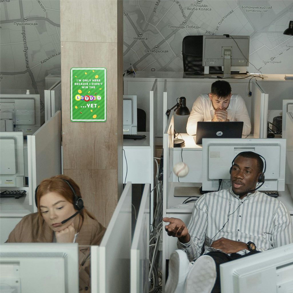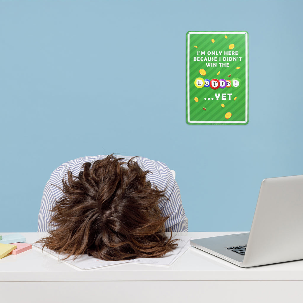 • LOTTO HUMOR OFFICE SIGN – Our “I’m Only Here Because I Didn’t Win the Lotto Yet” sign adds a hilarious lotto twist to cubicle accessories and office decor posters for daily laughs