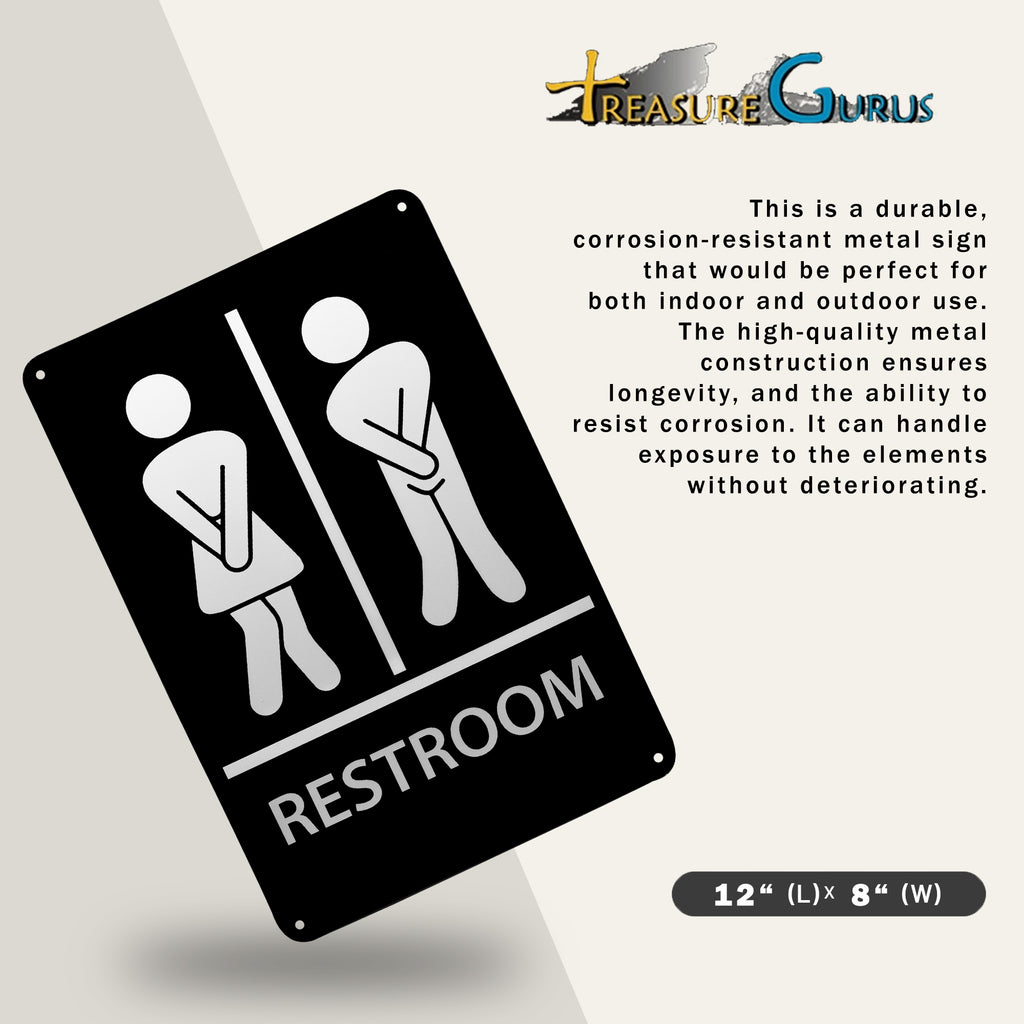 Stick Figure Crossing Legs Funny Bathroom Sign Metal Restroom Wall Art Decor