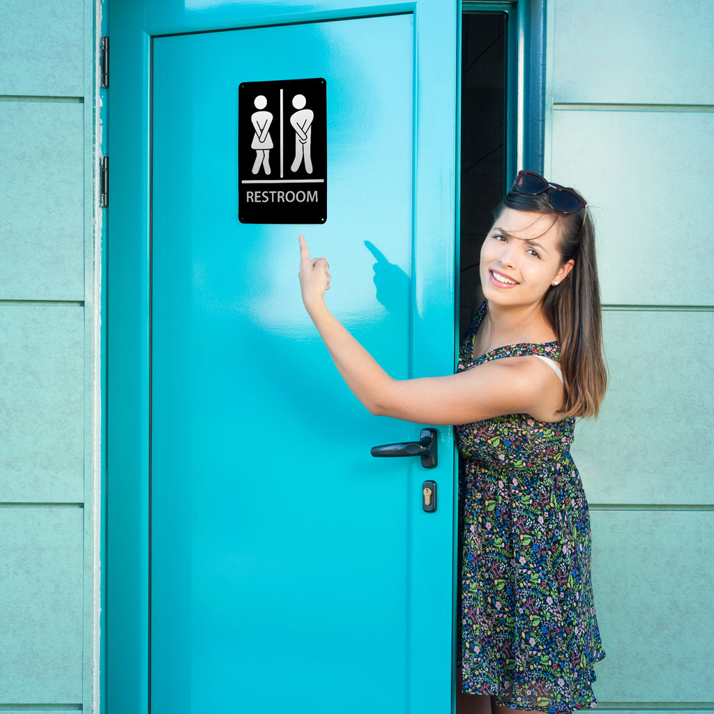 - EASY TO INSTALL WITH INSTANT LAUGHS – Perfect for anyone who has to go to the bathroom, this sign adds personality to home, office, bar, or business restrooms