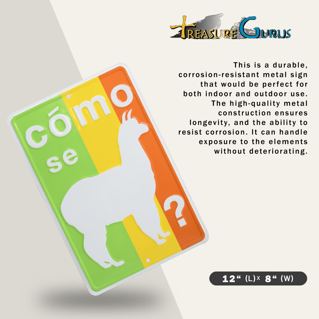 - FUNNY LLAMA WALL DECOR SIGN – Como Se Llama tin sign brings humor to classroom signs, man cave posters, and home office wall decor for adults and language lovers