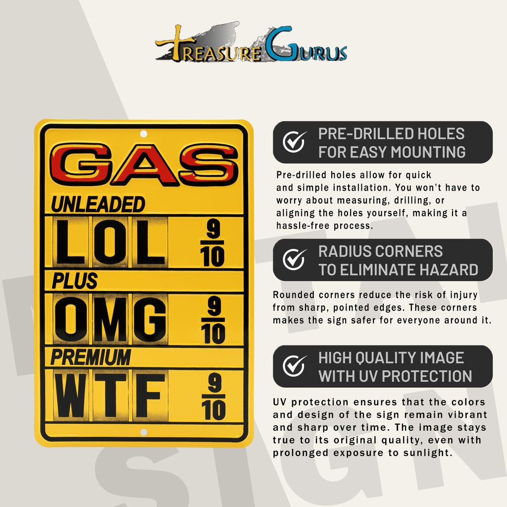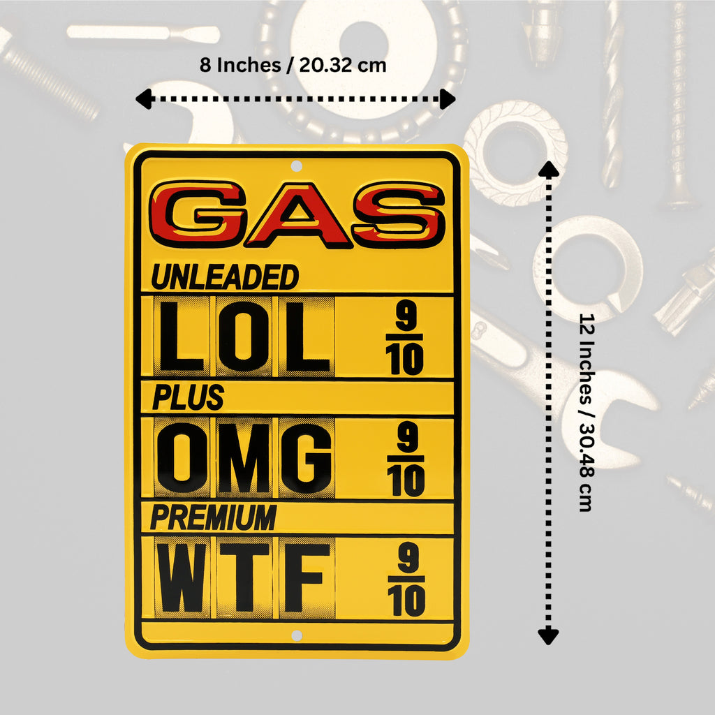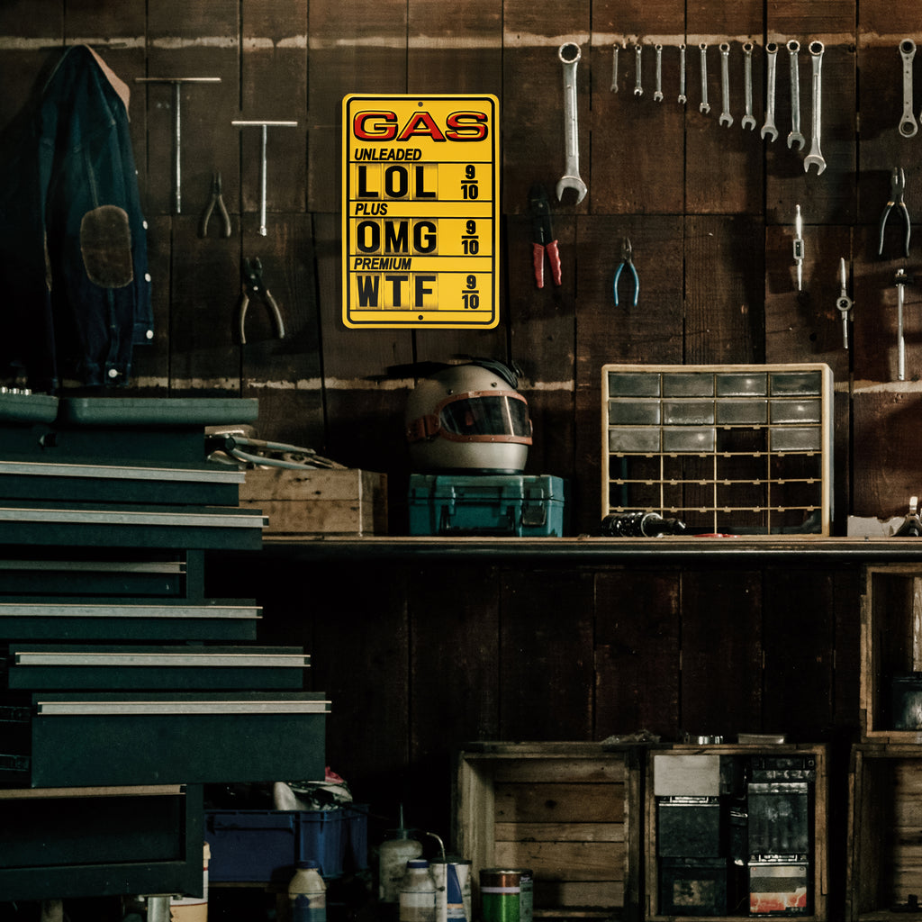 Fuel Prices LOL OMG WTF Funny Sign Man Cave Wall Decor Features: