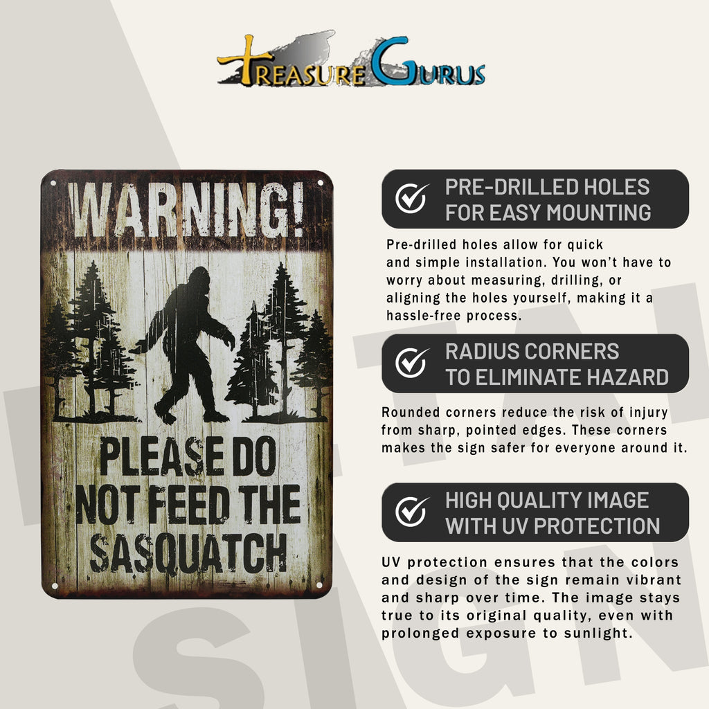 - CRYPTID DECOR THAT STANDS OUT – Do Not Feed Sasquatch Sign adds humor and mystery to metal wall art in man cave room decor, backyard setups, or forest-themed garage spaces