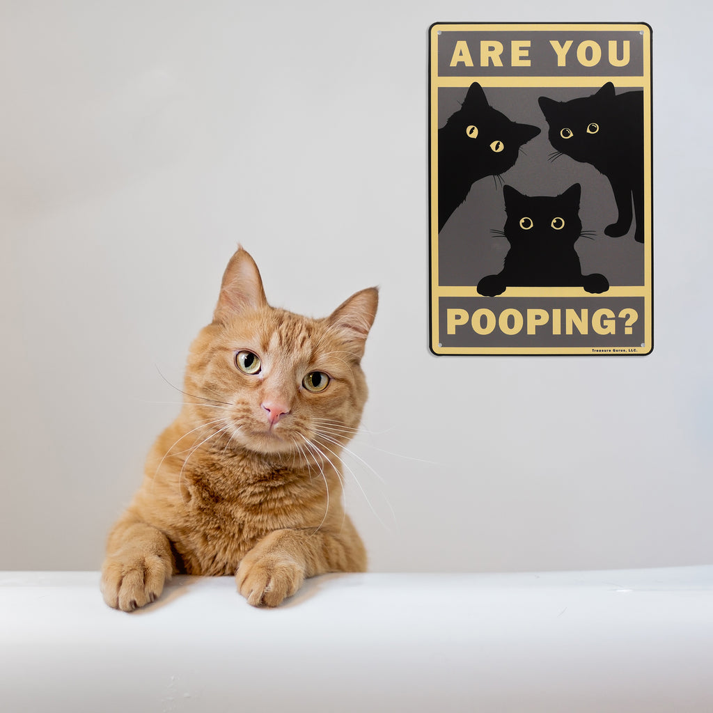 - CURIOUS CAT WALL DECOR - Funny Cats Bathroom Wall Art with an Are You Pooping Restroom Sign adds just the right amount of awkward charm to your daily bathroom routine