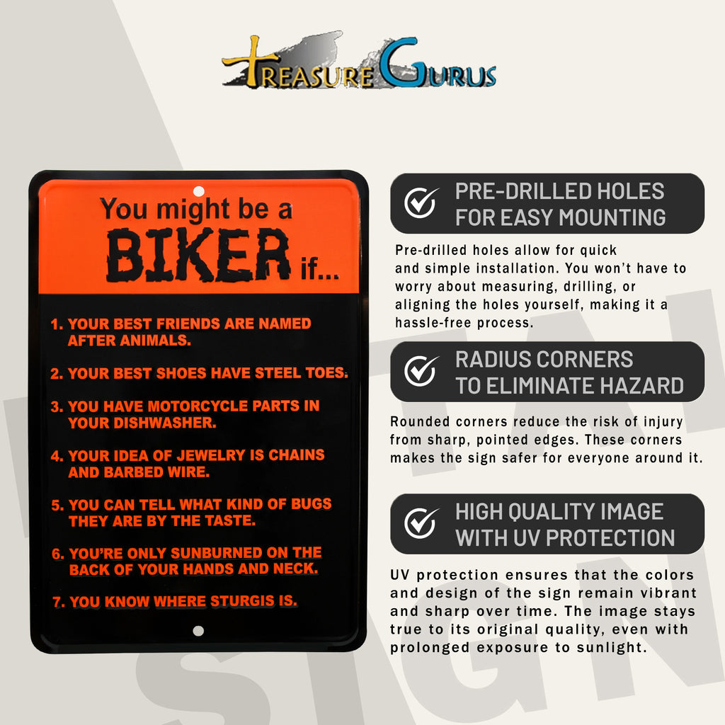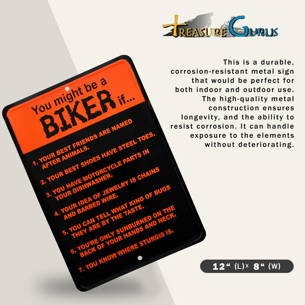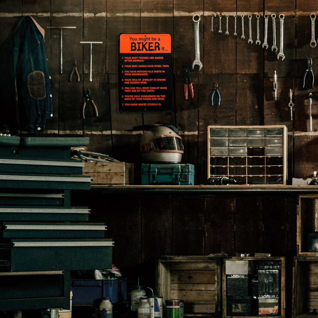 • FUNNY BIKER WALL SIGN - Our “You Might Be a Biker If” vintage metal wall sign doubles as funny wall art, motorcycle garage accessories, and cool biker gifts for men who love retro room decor