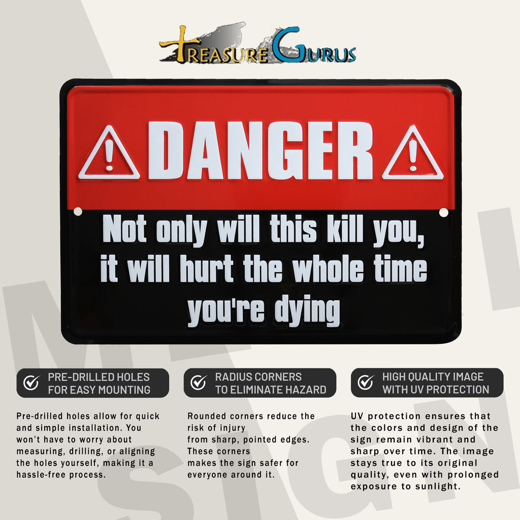 - DARK HUMOR WALL DECOR SIGN – Danger Not Only Will This Kill You It Will Hurt The Whole Time is perfect for garage, man cave room decor, office wall art, or bar signs with attitude