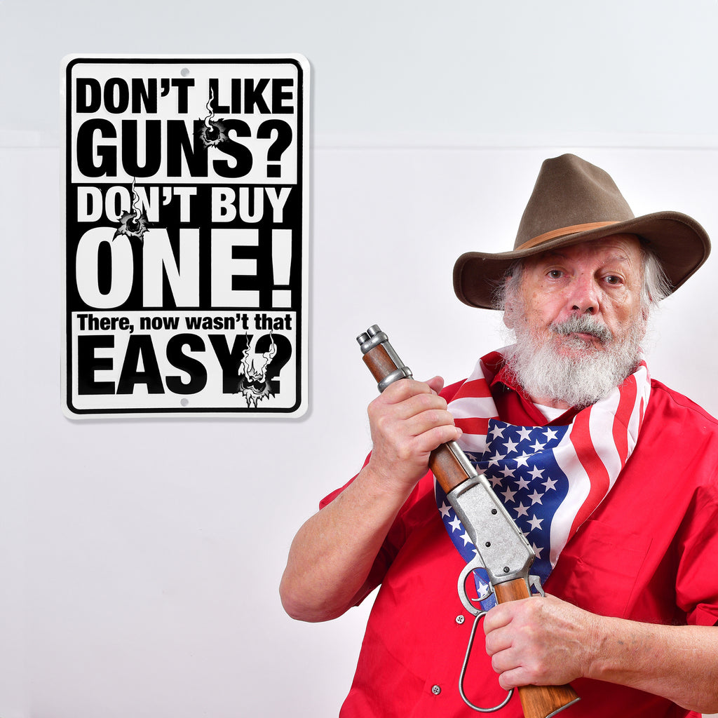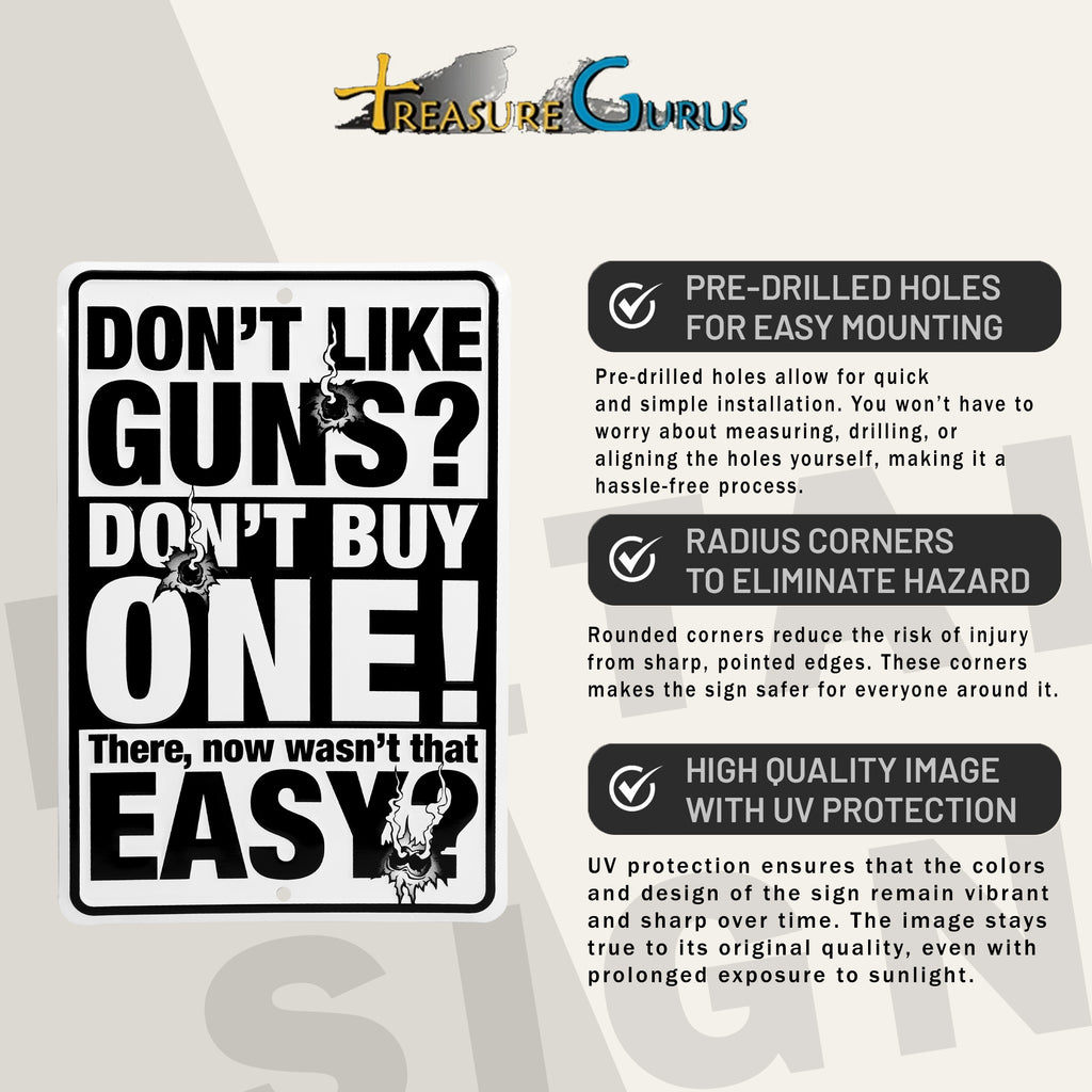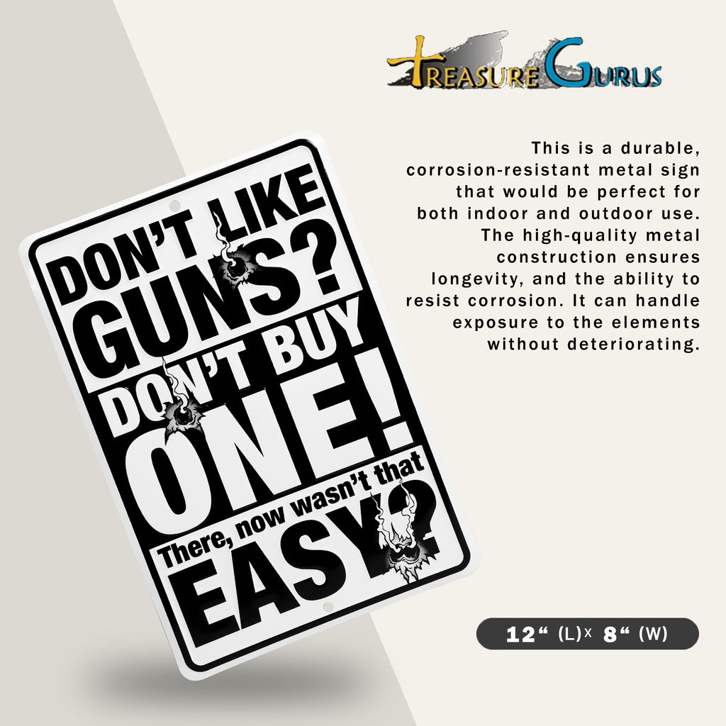 - STRAIGHTFORWARD AND FUNNY METAL WALL DECOR – Don't Like Guns Dont Buy One sign adds bold humor to garage warning sign setups, man cave room decor, and gun room accessories