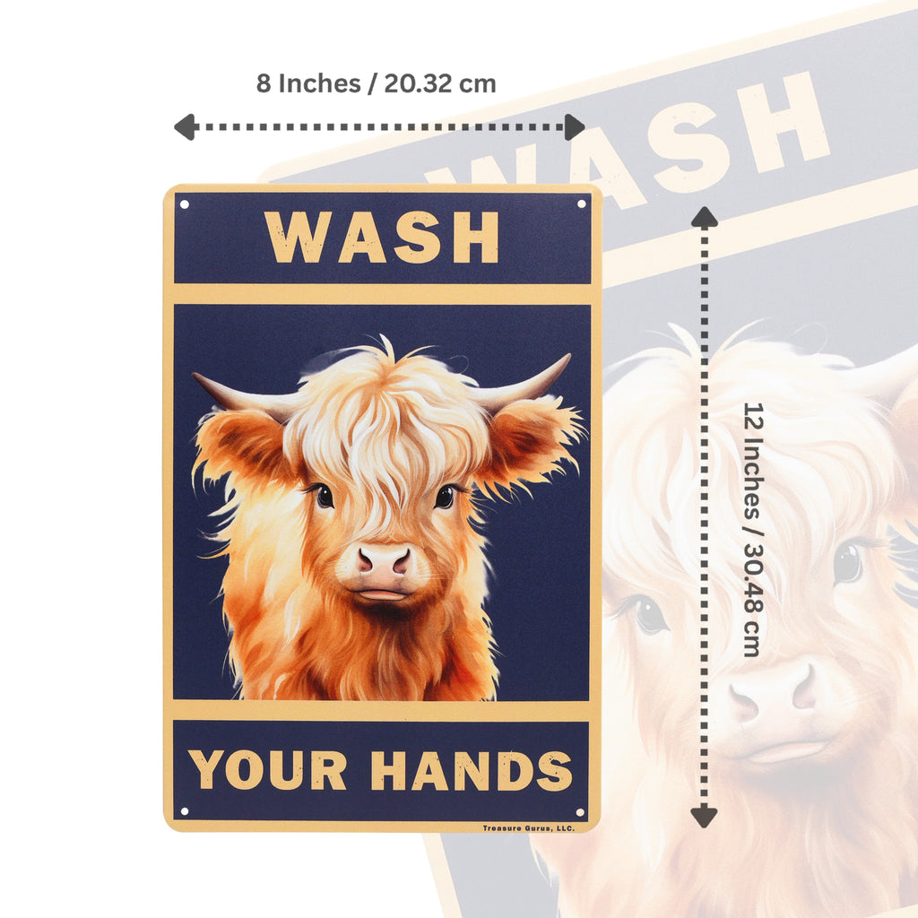Funny Metal Sign Wash Your Hands Highland Cow Wall Art Restroom Sign Bath Decor