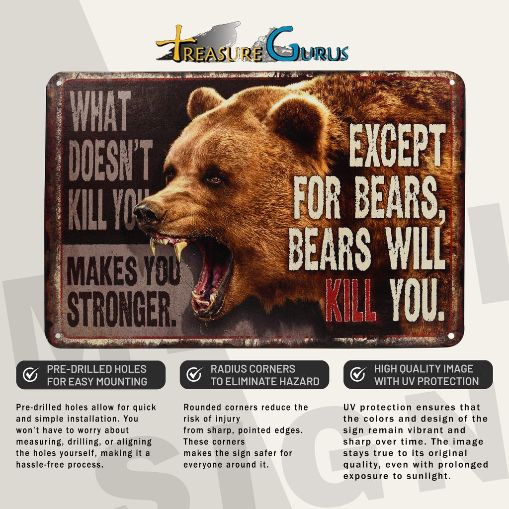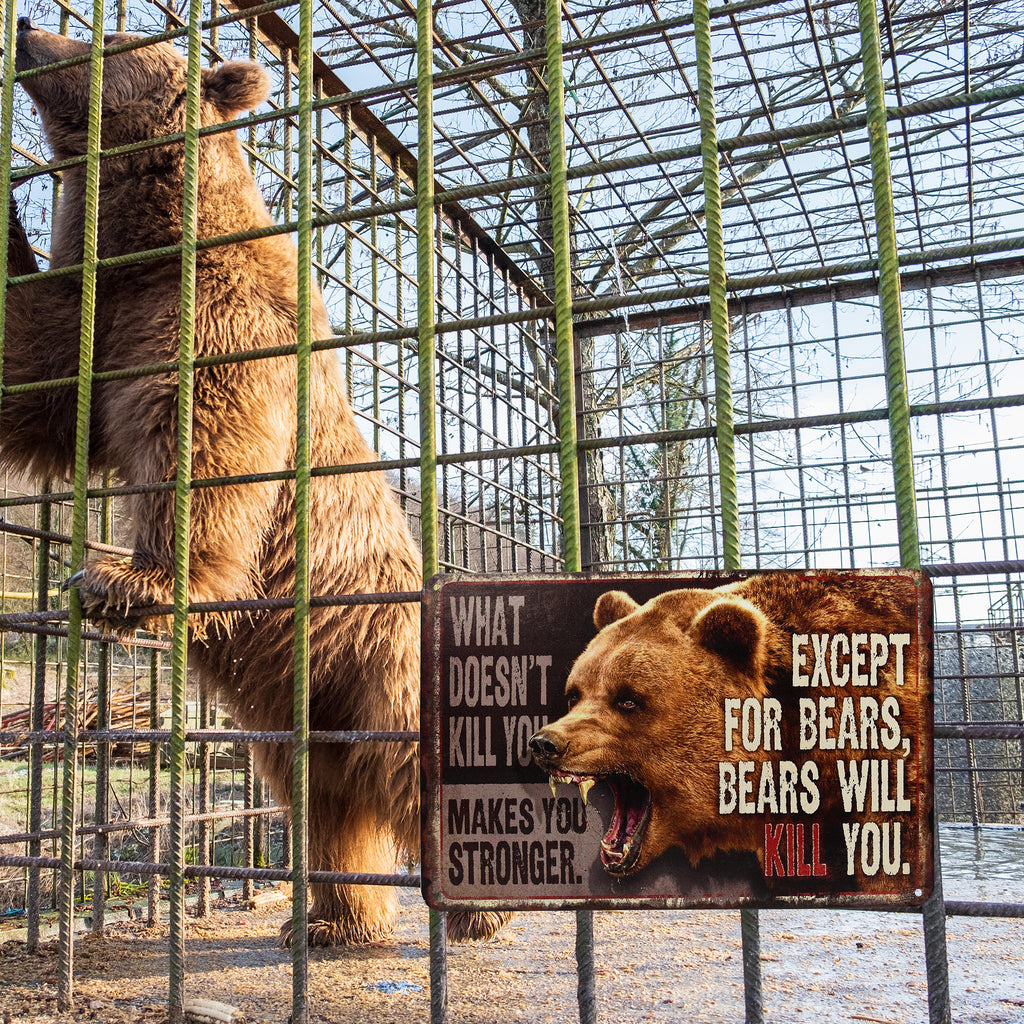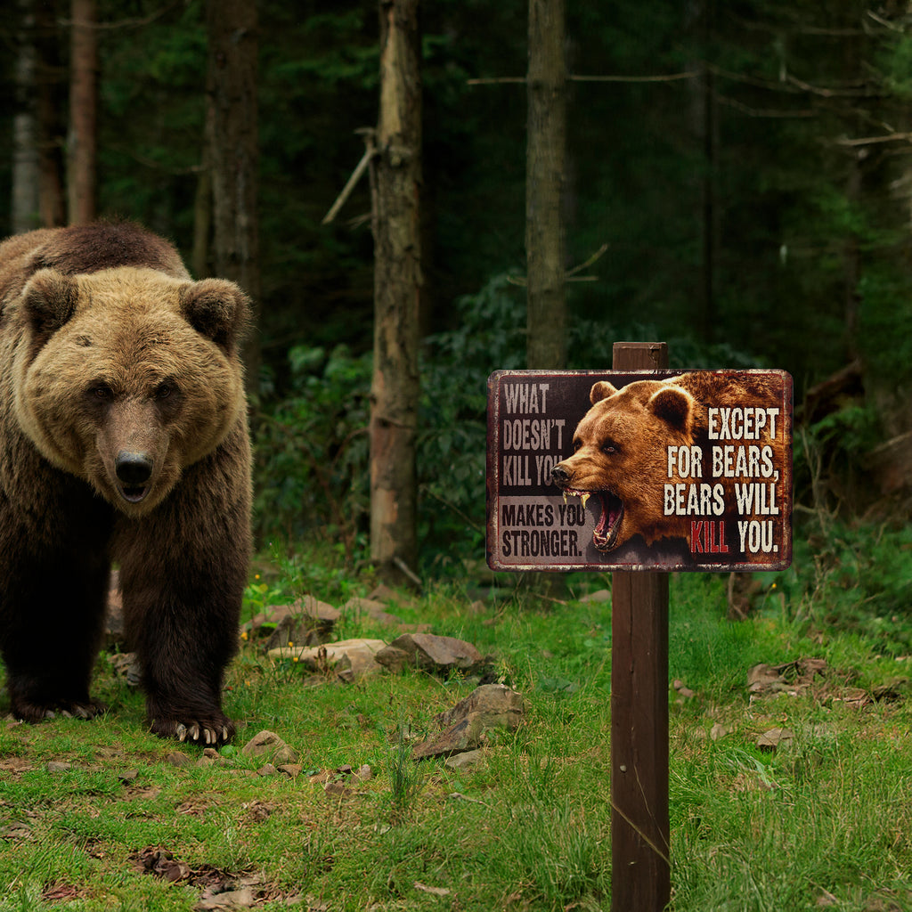 - HUMOROUS OUTDOOR DECOR - Our “What Doesn’t Kill You Makes You Stronger Except Bears Will Kill” sign combines man cave room decor and cabin wall art for a bold, funny statement indoors or outdoors