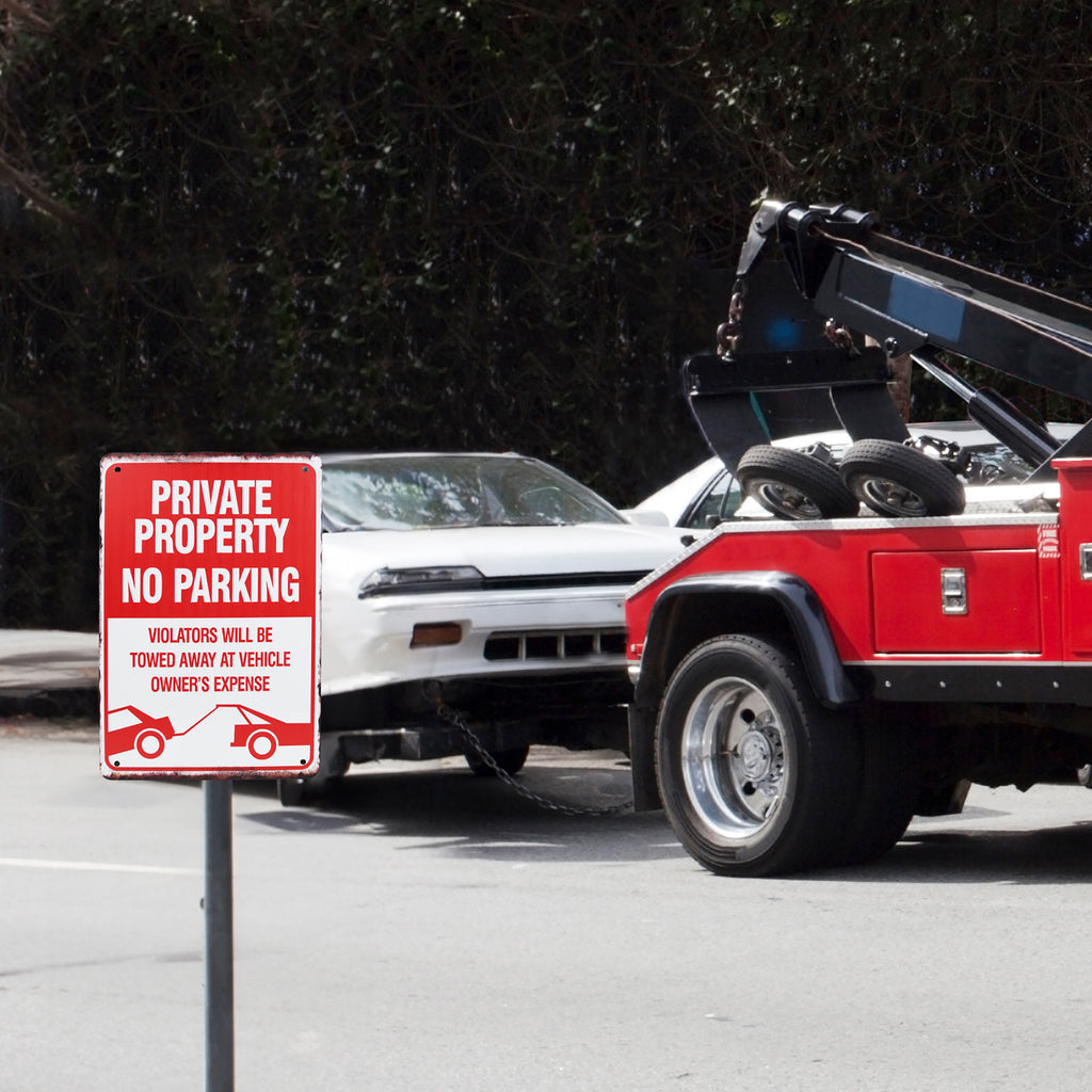 Clearly communicate your boundaries with the Private Property No Parking Violators Will Be Towed sign. Designed to prevent unauthorized parking, this metal warning sign is ideal for residential and commercial spaces. Whether it’s your garage door, driveway, yard, street, or curbside, this sign sends a direct message to all drivers: your property is not a public parking lot. The bold red and white lettering ensures visibility even from a distance, and the “Violators Will Be Towed” phrase reinforces your right to enforce the rules—no excuses, no confusion. Perfect for Tow Away Zone Outdoor Posted Notice locations, this durable metal sign is built for long-term outdoor use. Rain, sun, wind, and constant traffic won't diminish its effectiveness. The pre-drilled holes make mounting simple on fences, posts, or walls. From apartment complexes to personal driveways, it’s a practical solution for property owners who value their space and want clear signage that actually works. Maintain order, reduce frustration, and keep vehicles in their place with confidence.