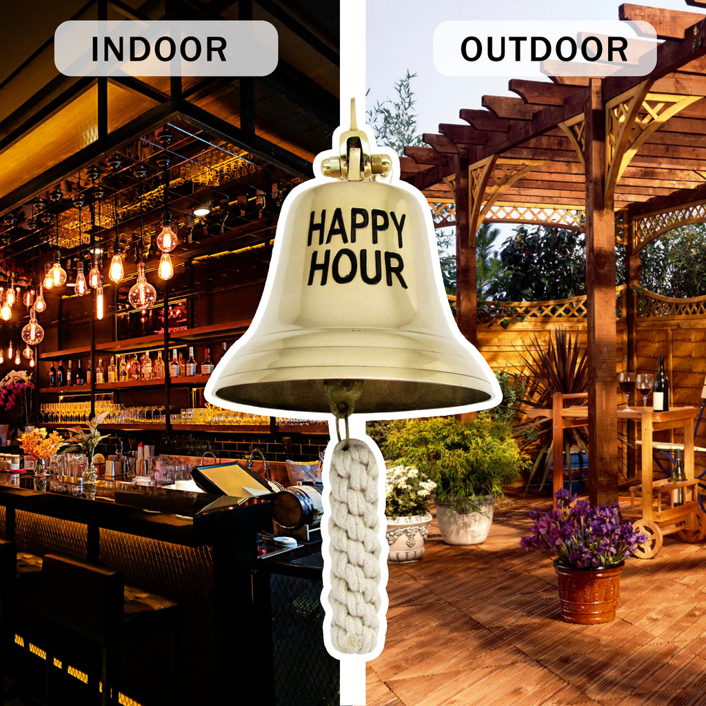 Brass Happy Hour Bell Large Hanging Outdoor Bar House Decor Call for Drink 6"